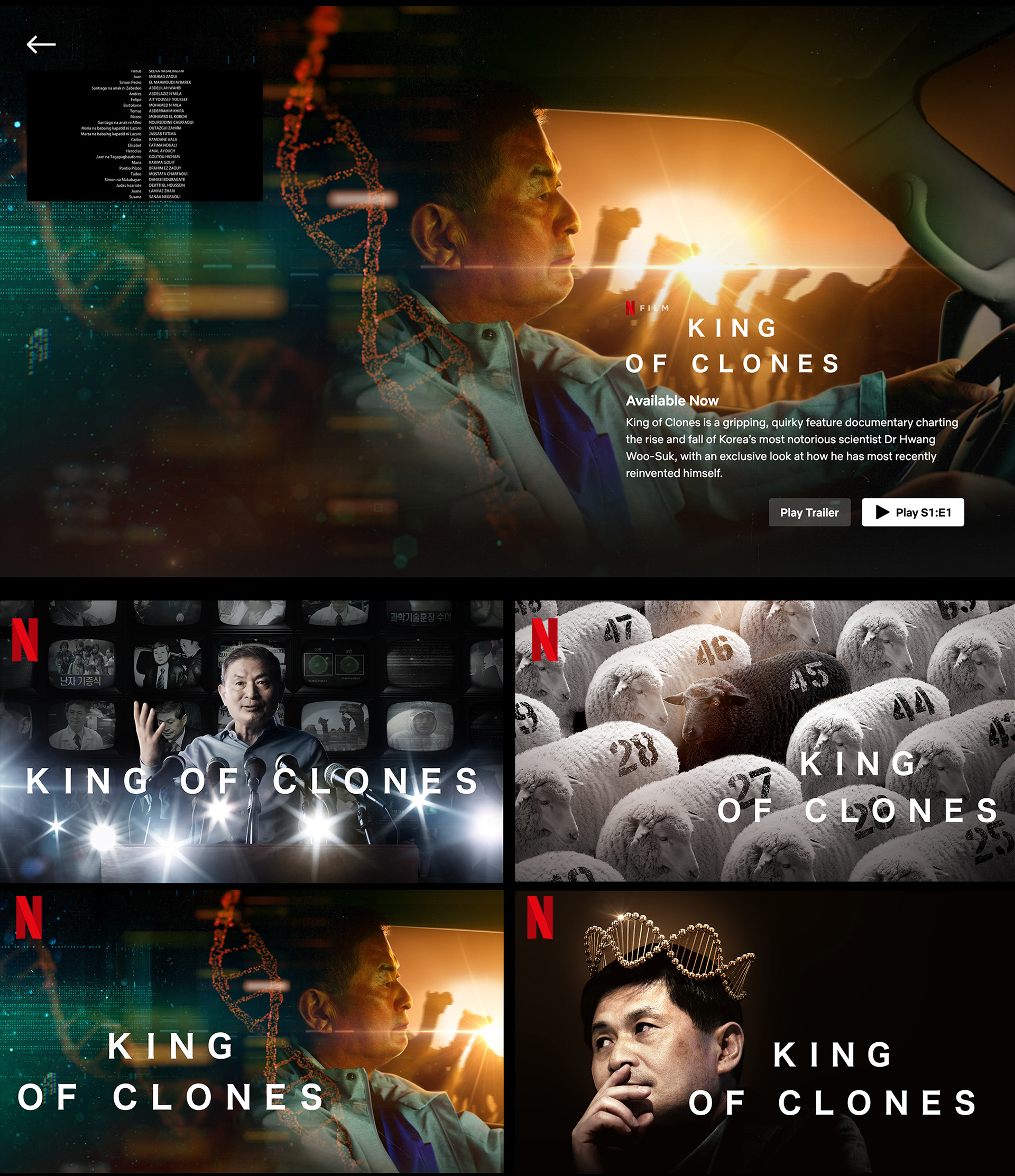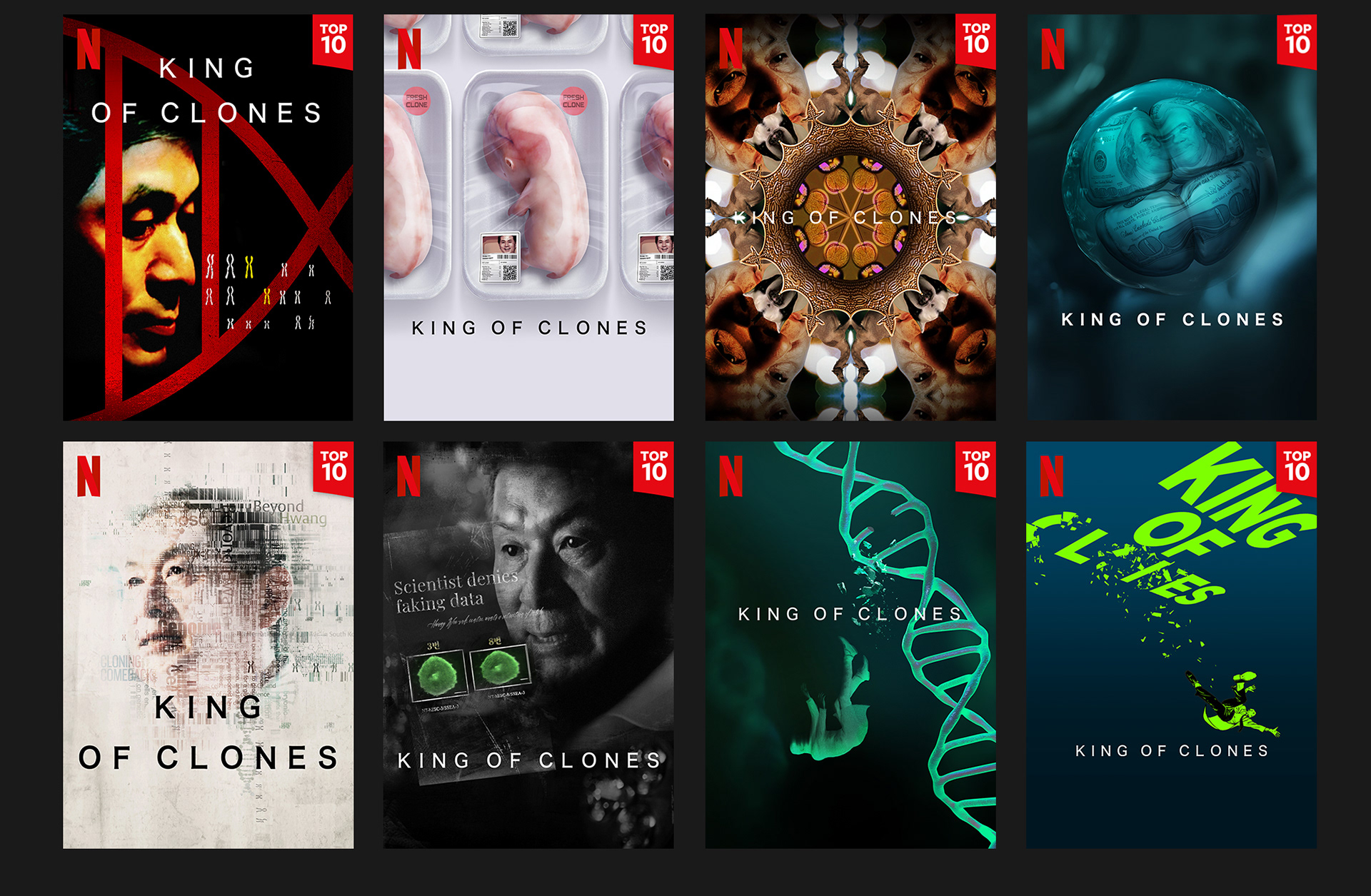 Netflix conceptual graphic package for the "King of Clones" MASTER created the Key art & English Title design